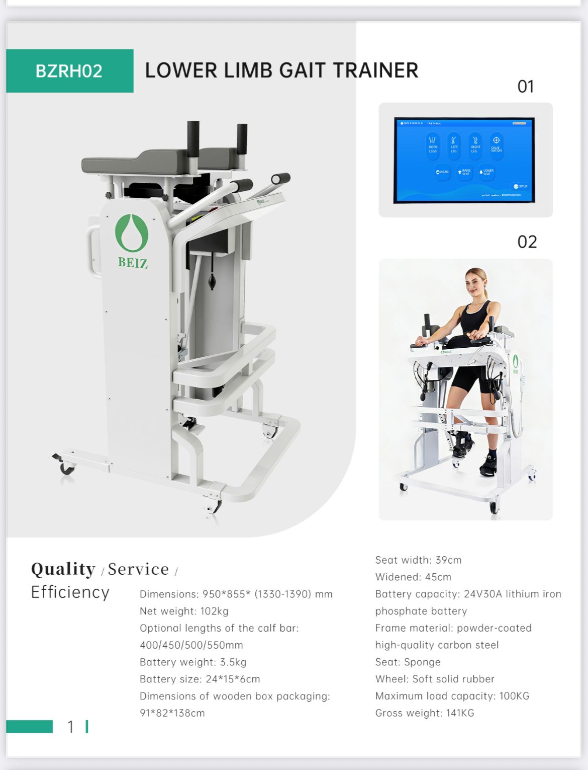 The Lower Limb Gait Trainer BZRH02 by WhiteShield Enterprises is an advanced rehabilitation system designed to assist patients in regaining walking ability, improving balance, and rebuilding lower limb strength.